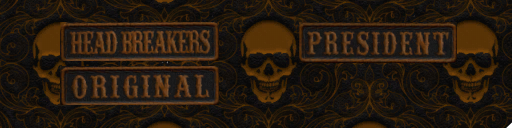 L’écusson porté à droite indique le grade ainsi que la fonction occupée par le frère ou la sœur qui l’arbore. Les écussons situés à gauche portent le nom du Club “Head Breakers” et précisent qu’il s’agit du Chapter d’origine / maison mère, identifié comme “Original”.